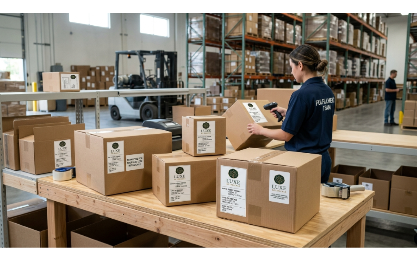 Blind Drop Shipping: Supplier information is hidden; packaging only shows the client’s brand.