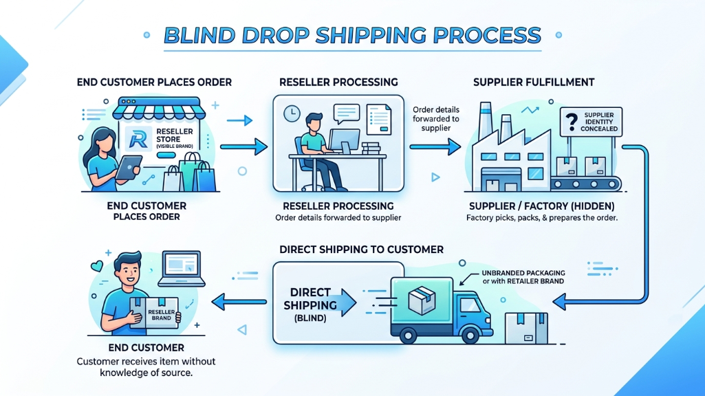 A blind drop ship trade printer is a manufacturer that provides production and logistics services specifically for B2B intermediaries. Unlike traditional factories, their core business model is “invisibility.” They strictly follow blind shipping protocols to ensure that packages contain no factory branding, packing slips, or contact information.