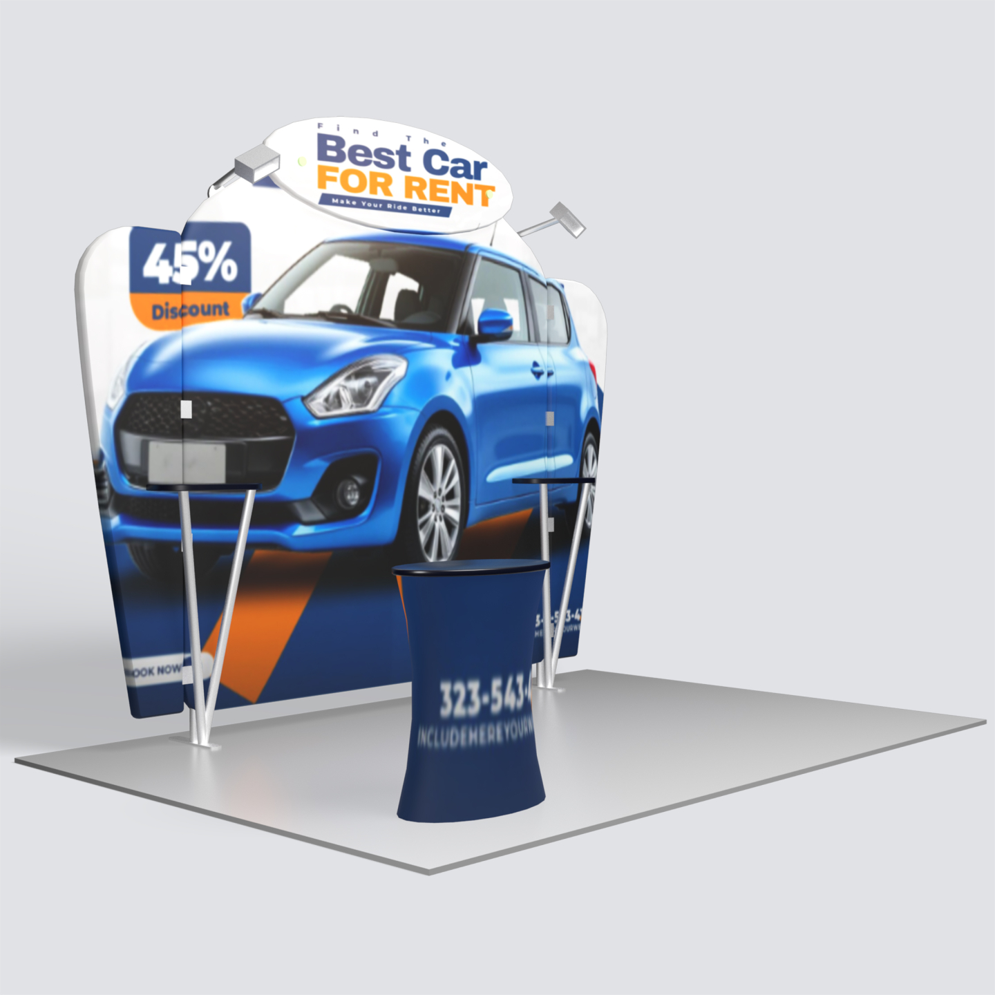 • Size & Footprint: Standard 10ft x 10ft configuration, compatible with most trade show venues